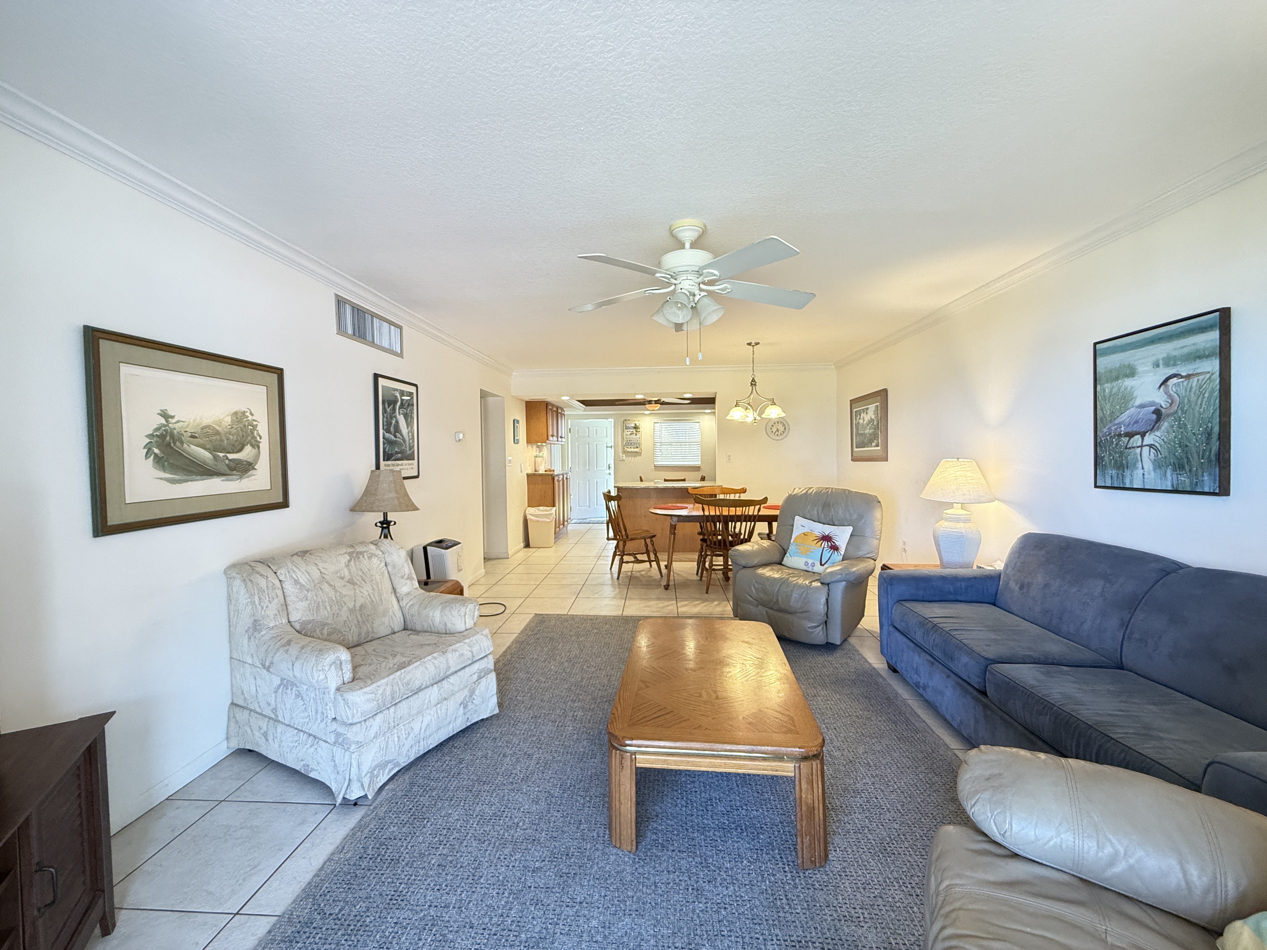 Discover the perfect beachside escape in this 2Bd, 2Ba ground floor condo home in New Smyrna Beach, a block to the famous Flagler Ave shopping and dining district, the beach just a few steps beyond your back patio. The open-concept layout is perfect for socializing and entertaining. Upon entering, the kitchen connects to both the dining, living area and patio creating a welcoming space. This design not only enhances he overall sense of spaciousness but also allows for a delightful indoor-outdoor living experience, making it an ideal place to enjoy the coastal surroundings and create lasting memories. Fully furnished this condo is ready for new owners to enjoy as a second home and profit from rentals. Its spacious layout and first-floor convenience make it an ideal spot to unwind with family and friends.